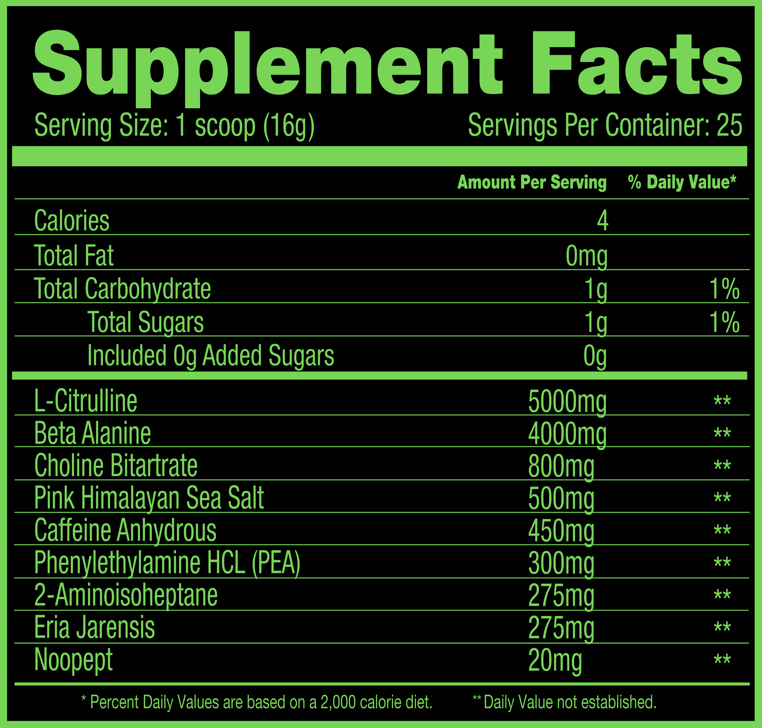 The combination of 2-Aminoisoheptane, Eria Jarensis, and Noopept provides powerful stimulation, increased mental clarity, and cognitive enhancement for peak performance.